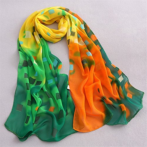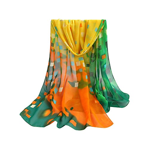 Title : Prettygood Women's Floral Print Chiffon Silk Scarf Long Plaid Voile Shawl Yellow