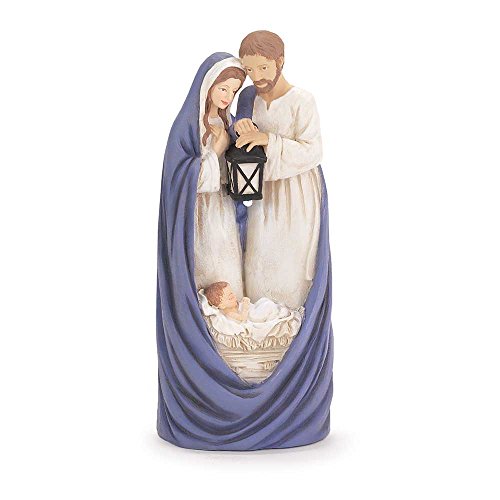 - Features Holy Family swaddled in periwinkle robes with lantern