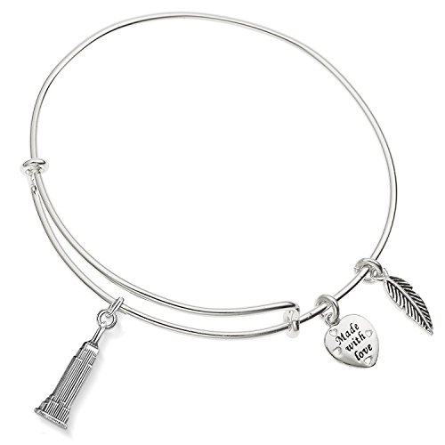 Enni of York Empire State Building Charm Expandable Ani-Silver Bangle Bracelet