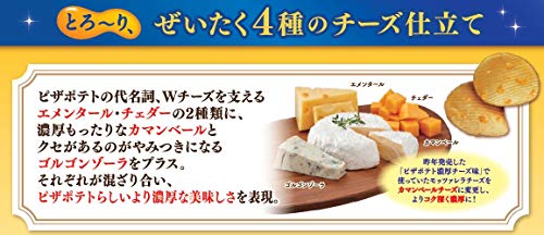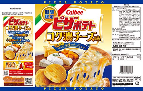 原材料:じゃがいも(遺伝子組換えでない)、植物油、乳糖、ぶどう糖、でん粉分解物、食塩、チーズパウダー(エメンタールチーズパウダー、チェダーチーズパウダー、ゴルゴンゾーラチーズパウダー、カマンベールチーズパウダー)、砂糖、でん粉、たん白加水分解物(小麦・大豆を含む)、酵母エキスパウダー、酒粕パウダー、フライドガーリックパウダー/調味料(アミノ酸等)、香料、乳化剤、酸味料、パプリカ色素、甘味料(アスパルテーム・L-フェニルアラニン化合物)