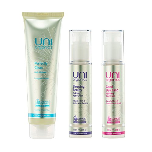 The Uni Organics Anti-Aging Skin care set contains 3 everyday essential skincare products to keep your skin hydrated and refreshed. These must have products come in a reusable pouch and make a beautiful gift for someone special.