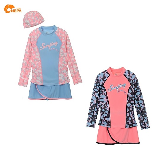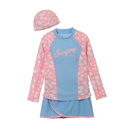 - 시즌 패턴이 믹스된 여아용 래시가드 세트 - 스커트 안에 이너 숏팬츠가 있어 활동성이 좋으며, 신축성이 우수하여 물놀이 활동에 적합함 - 래시가드 탑, 스커트, 수영모가 세트로 구성되는 아이템 - 140, 150 사이즈 브라캡 포함 - 130 사이즈는 브라고리만 있음 - UV 차단효과로 피부를 보호해줌