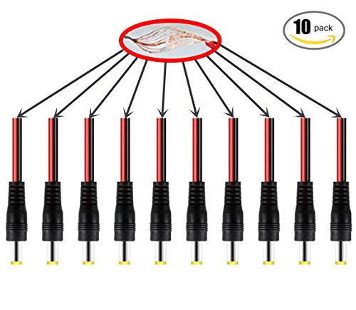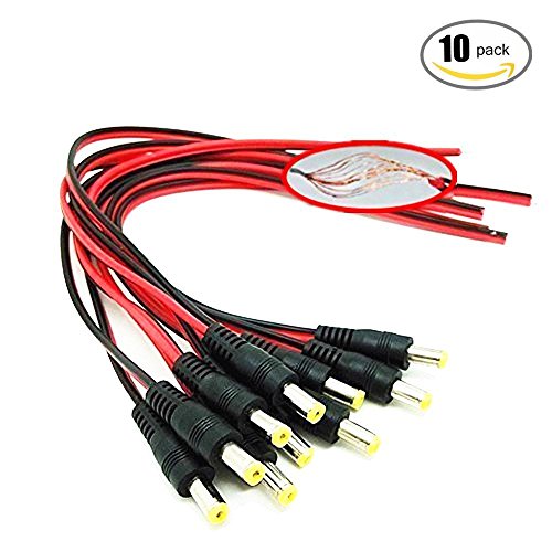OdiySurveil(TM) 10PCS 10 inch(30cm) 2.1 x 5.5mm DC Power Male Plug Pigtail for CCTV Security Camera