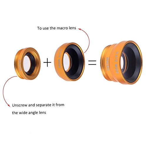 - Wide angle and macro lenses in a 2 in 1 set: these two small lenses are screwed together for easy storage. To use the wide angle, simply attach both lenses to the clip provided. To use the macro lens, simply unscrew the wide angle lens.