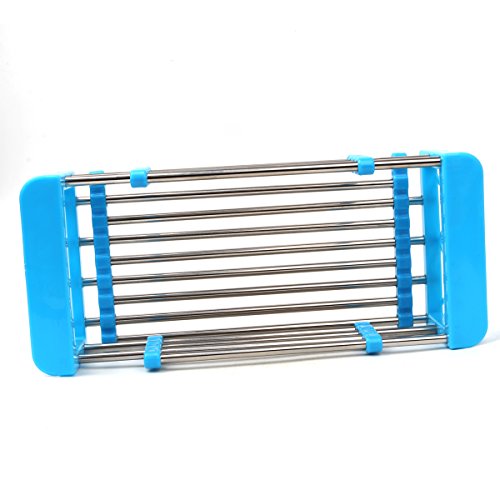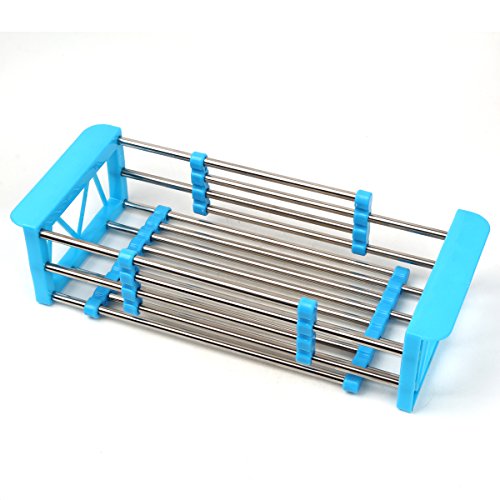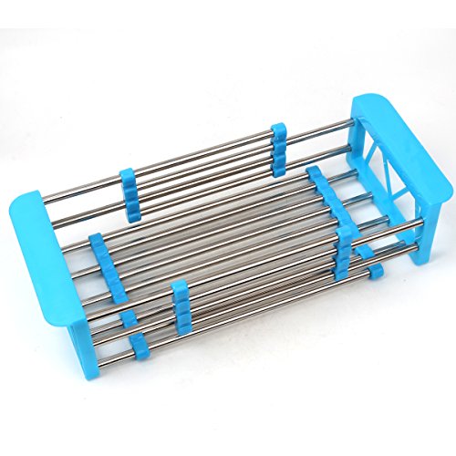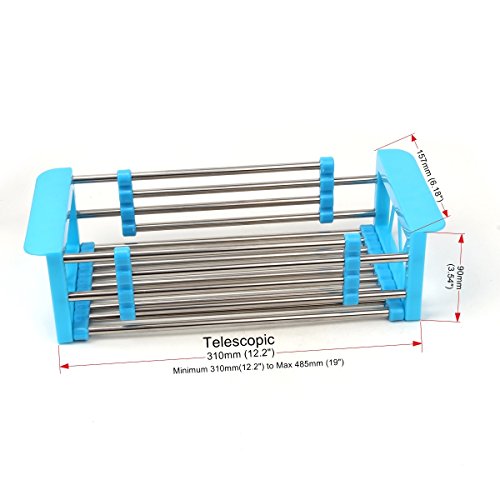 Wingsmoto Telescopic Stainless Steel Draining Racks Wash Vegetable Basket Dish Holders Sink Blue