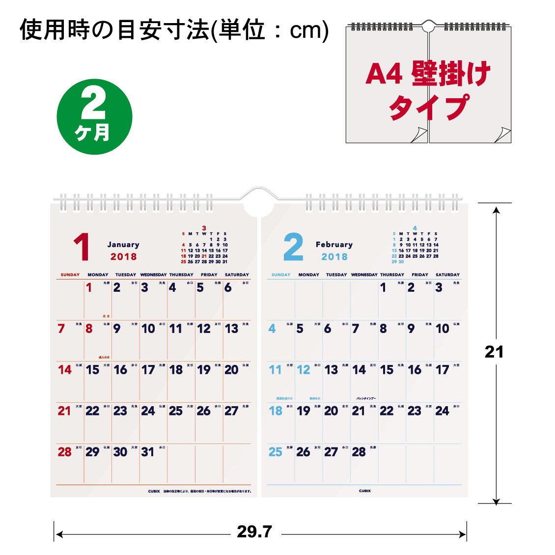 Product name: Cubix 2018 Basic calendar wall hanging A4 2 months 203113-01