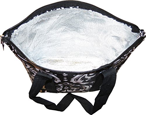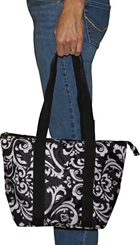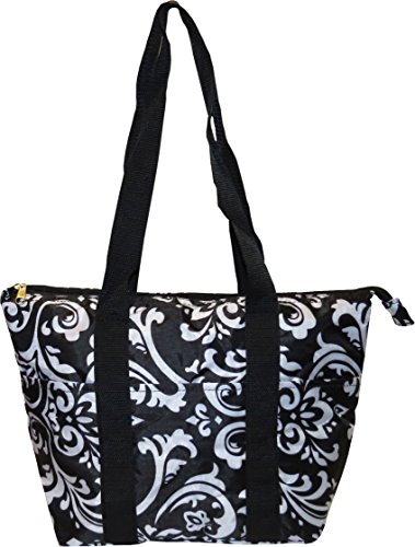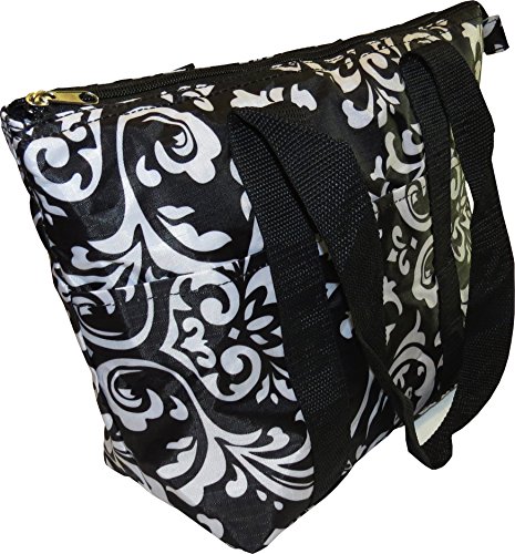 -. Binding : Apparel -. Brand : Express Yourself Products -. Color : Black/White -. Department : womens -. EAN : 0682384215920 -. Feature : Approximate Size: 14 x 5 x 9 inches (LxWxH). / Patterned vinyl insulated lunch bag - easily holds several lunch containers and a drink / Three small outside pockets - great for holding utensils, napkins, condiments, etc. / Zipper closure and comfortable fabric carrying handles. / FREE Standard Shipping -. PackageQuantity : 1 -. ProductGroup : Apparel -. ProductTypeName : BAG -. Size : One Size -. Title : Black Damask Large Insulated Lunch Bag -. UPC : 682384215920