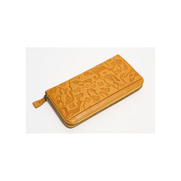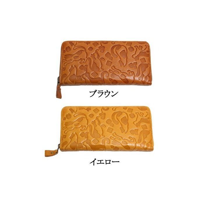 원본상품명: レディス 猫柄 長財布 ラウンドファスナ 小入れ 札入れ 野村修平 イエロ
