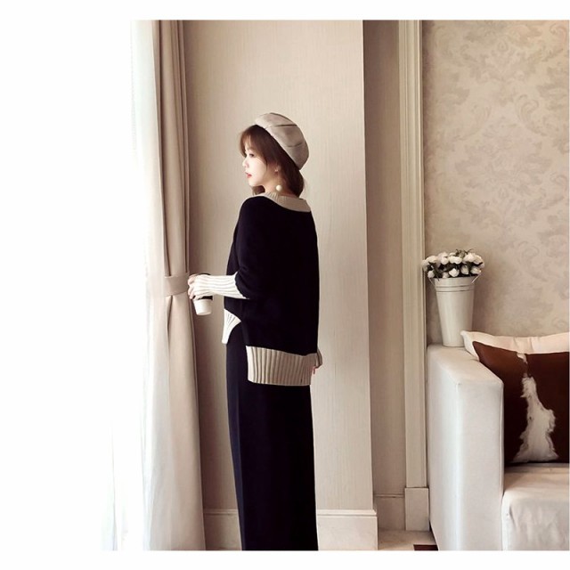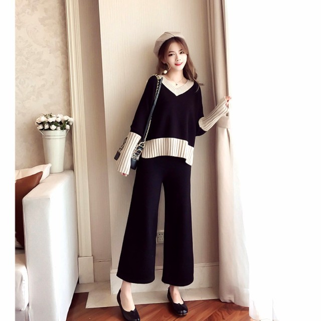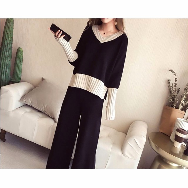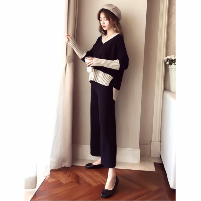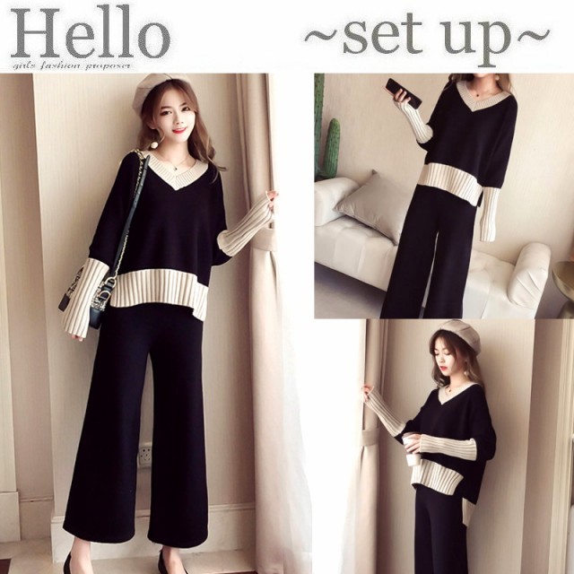 Vネックニットとワイドパンツのセットアップです☆