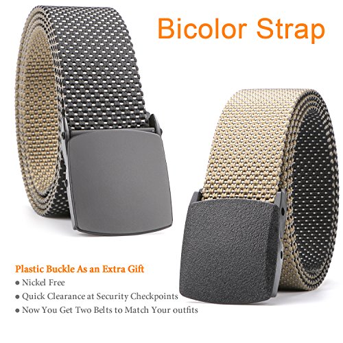 Extra Gift:Plastic buckle as an extra gift.Lightweight and nickel free,good for clearance at security checkpoints.It's perfect to change the buckle to have different style at any time,if you need to match your outfits.