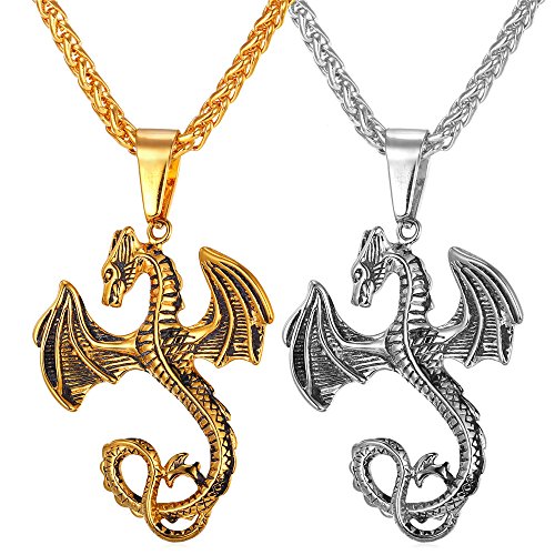 -. Feature : Cool dragon design, for men. / Pendant:2.6 inches / Chain: 3mm wide spiga chain,20+2 inches/adjustable. / Nickel free