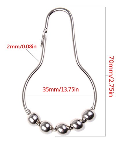SIZE - The top interior diameter is 13.75inch/35mm. And the ring height 2.75inch/70mm. It can be used for most of the metal rods in bathroom. Also, if the top ring of your shower curtain is not very thick, you can even hang double curtains in our hooks for it will bear at least 5KG curtain with durable 0.08inch/2mm thickness. It can take 5 kg weight at most;