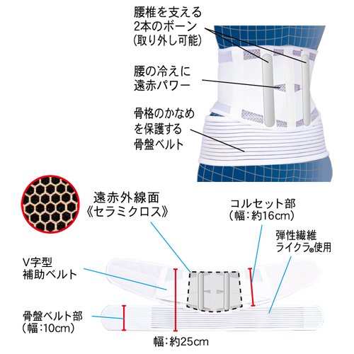 Japan Men and Woman Clothing - Yamada type waist Easy corset pelvis belt with waist for L size (waist 85 ~ 105cm / Hip 90 ~ 105cm) white *AF27*