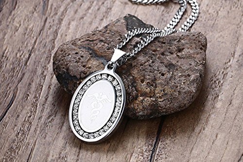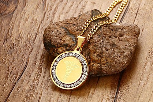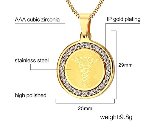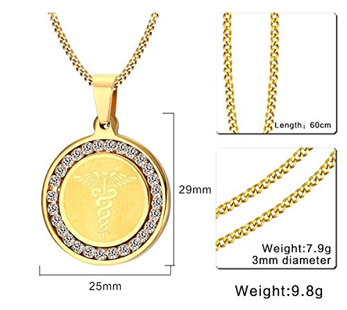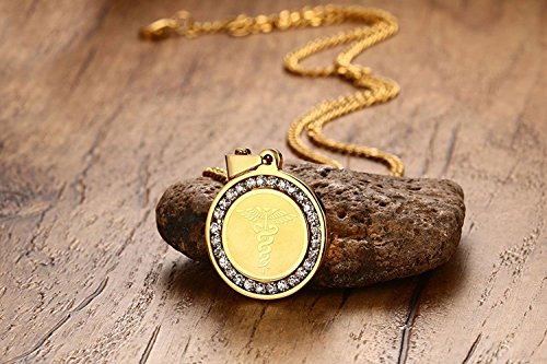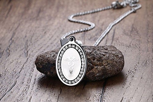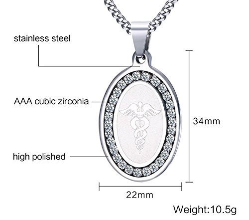 -. Title : Free Engraving Women's and Men's Stainless Steel Medical Alert ID Cubic Zirconia Pendant Necklaces With 24" Curb Chain