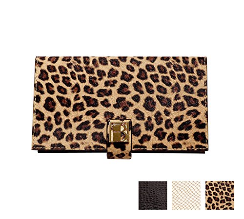Wild Magnetic Makeup Clutch Handbag: Leopard Cosmetic Organizer with Mirror, Wallet, and Phone Case - Textured Vegan Leather, Silk Fabric Lining,...