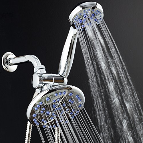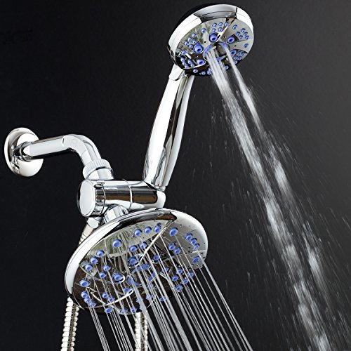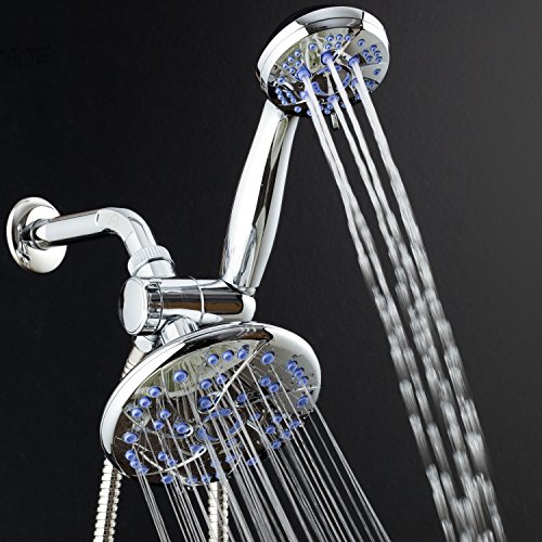 LATEST DESIGN FROM TOP-BRAND MANUFACTURER. Discover the ultimate combination of Top Quality, High Power & Microban® Protection! Patented 3-way Water Diverter lets you enjoy two luxury showers separately or together! Each features advanced 3-zone Dial, Rub-clean Jets and 6 settings: Rain, Massage, Mist, Rain/Massage, Rain/Mist and Water-saving ON/OFF Pause. Includes Angle-adjustable Bracket, Stainless Steel Hose, Plumber's Tape & LIFETIME WARRANTY. All-Chrome Finish. EASY TOOL-FREE INSTALLATION
