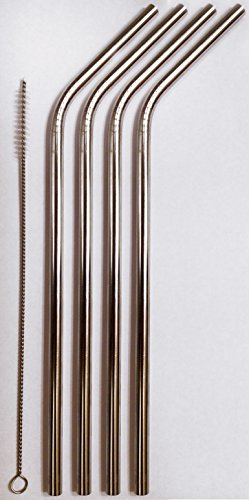 Stainless Steel Drink Straws- Set of 4 straws straws + Cleaning Brush - CocoStraw Brand Drinking Straw - FUN! Handy, Elegant, Metal,Washable, SAFE, NON-TOXIC non-plastic or glass - UNbreakable!