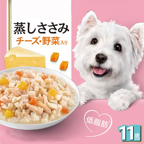 原材料:肉類(鶏肉、ささみ)、野菜類(にんじん、かぼちゃ)、小麦、チーズ、ビタミン類(C、E)、ミネラル類(Cl、I、Na)、増粘多糖類、ポリリン酸Na