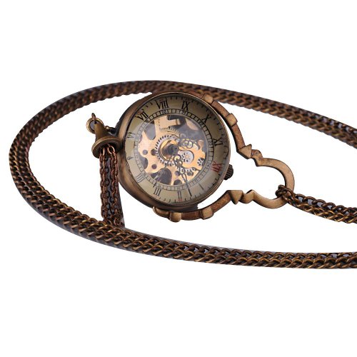 -. Title : AMPM24 Mens Brass Ball Glass Ring Skeleton Mechanical Pocket Watch Chain WK892