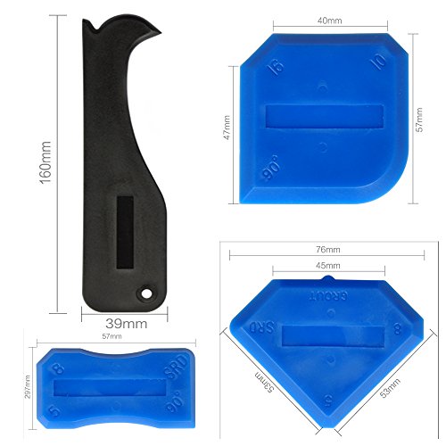 5-PIECE IN A SET.2 sealing edges,1 bonus mini applicator,1 caulk removal tool and 1 scraper,5-piece caulking tool kit for a perfect finish. The scraper is additional for scraping spare sealants