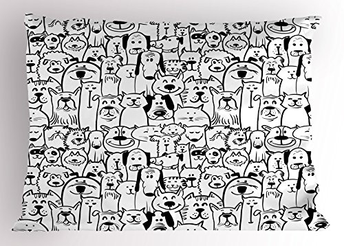 (Ambesonne)/Bedding Bath/Bedding/DIRECT FROM USA/Doodle Pillow Sham by Ambesonne, Collection of Dogs and Cats Cute Animals Fun Happy Beings Cart...