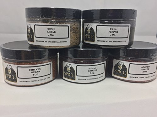 -. Feature : Contains: Aleppo Pepper, Urfa Pepper, Shish Kebab Seasoning, Chicken Kebab Seasoning and Ground Sumac. / All natural. Never any MSG or fillers. Our spices are 100% pure. / Our manufacturer custom packs all orders by hand so you know your spice is fresh. / A perfect gift for any home cook or aspiring chef. / Comes in convenient 2 oz.jars for easy use and storage.