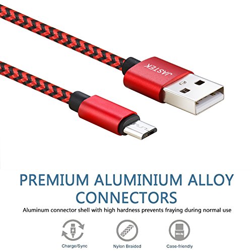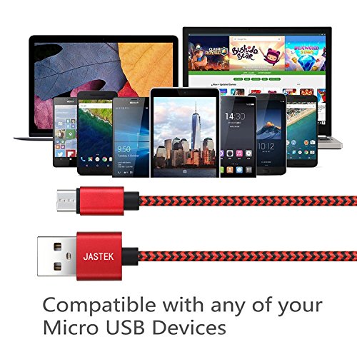JASTEK Micro USB Cable 3Pack (0.8ft, 3.3ft, 6ft) Durable Nylon Braided High Speed 2A Current Charging Cables for Android, Samsung, Sony, Huawei, HTC, Nokia, LG, Nexus and other Smartphones - red