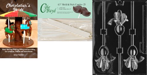 Cybrtrayd 'Iris Lolly' Fruits and Vegetables Chocolate Candy Mold with 25 4.5-Inch Lollipop Sticks and Chocolatier's Guide