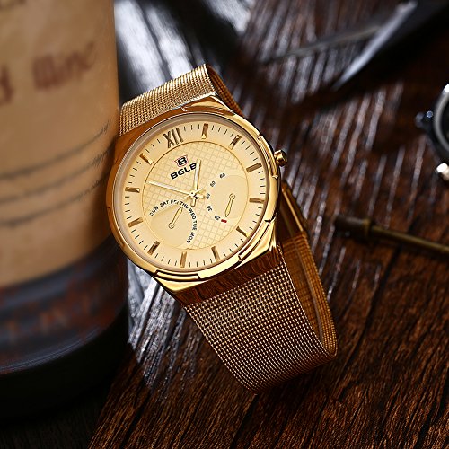-. Title : Rockyu ブランド 人気 メンズ 腕時計 防水 ゴールド ステンレス バンド おしゃれ 時計 セレクト [並行輸入品]