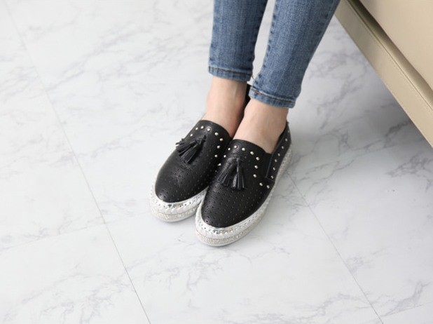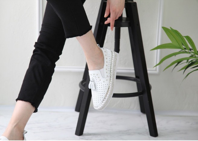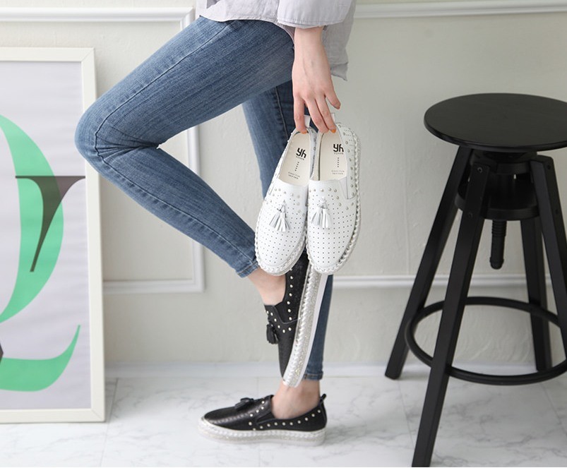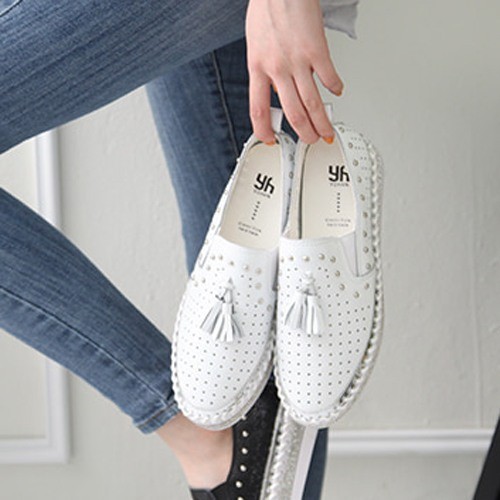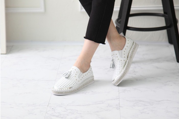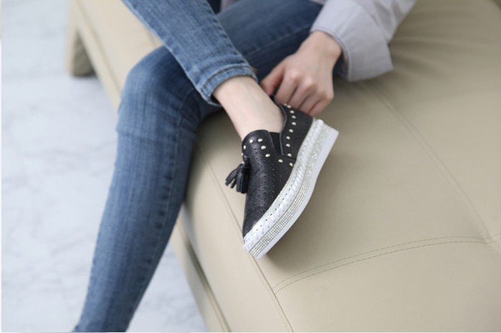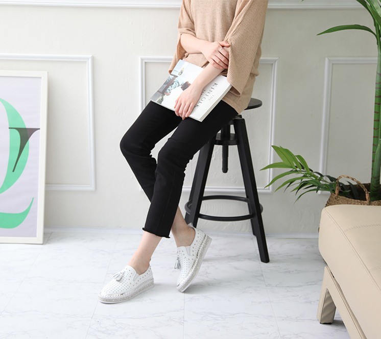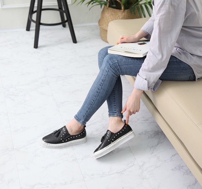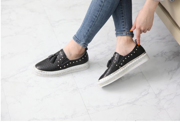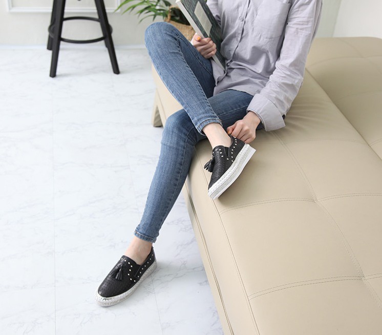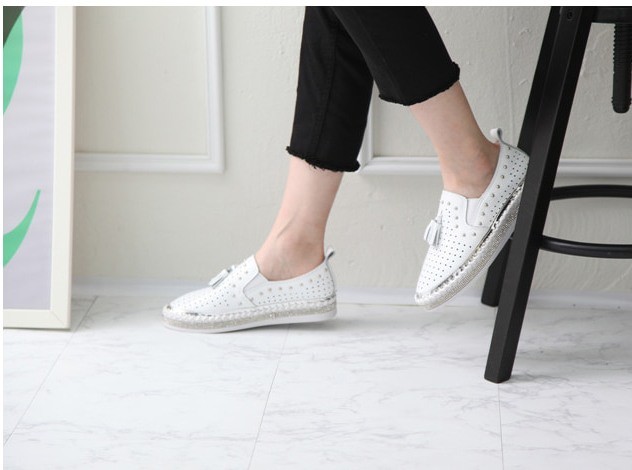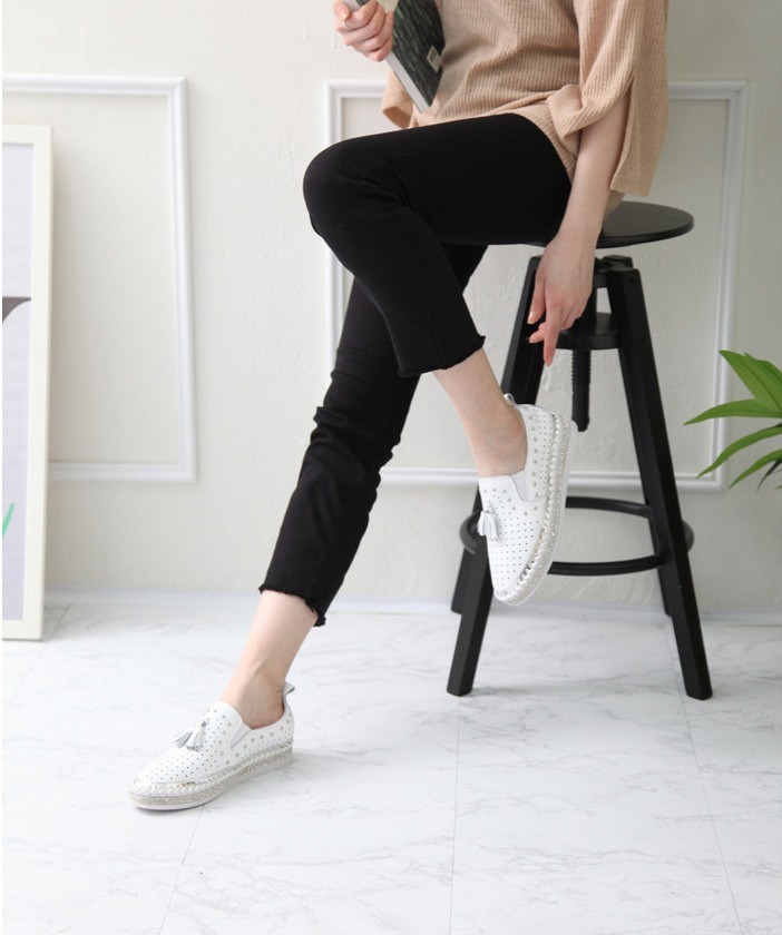 商品名:スリッポン レディース タッセル スニーカー 本革 レザー 2018 春 ファッション 靴 婦人靴