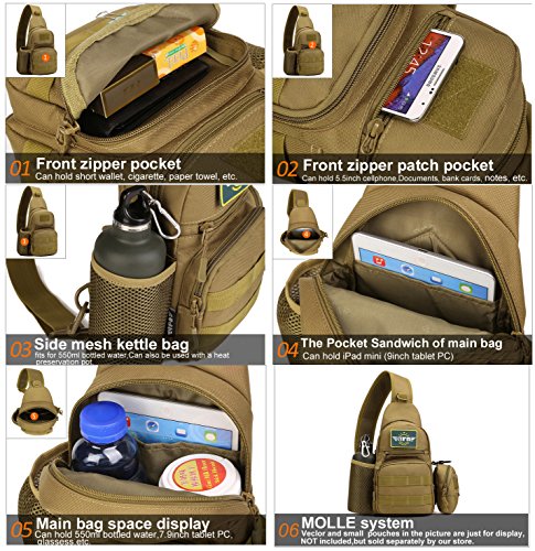 -. Title : MAGNIVIT Tactical Single Shoulder Bag Waterproof Military Sling Chest Pack Bag Casual Crossbody Bag Travel Daypack for Hunting Outdoor