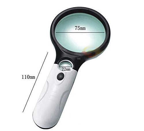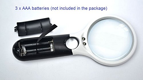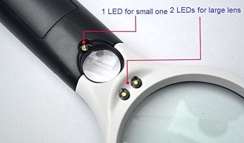 Pls Note:Easy to hold Power: 3 x AAA batteries (not included in the package). Independent lighting design, 2 LEDs for the large lens and 1 LED for the small one, ensure better lighting effect.
