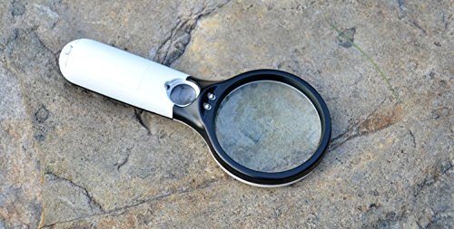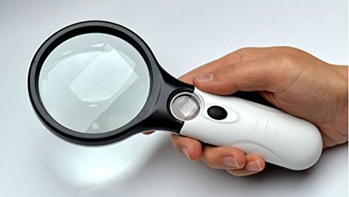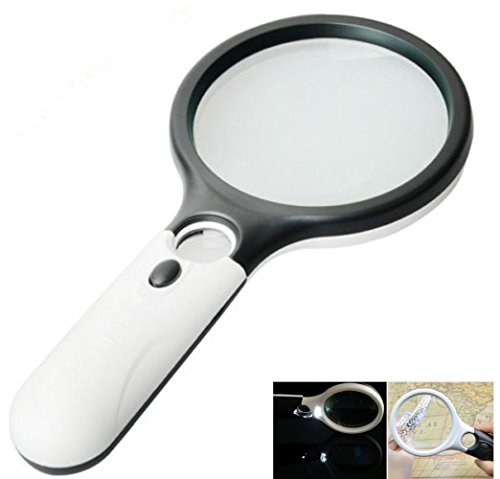 Ninewell Handheld Magnifier 3 LED Light 3X 15X Reading Magnifying Glass Lens Jewelry Loupe Black and White for Father Mother Elder