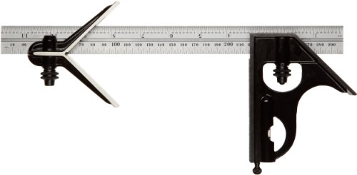Starrett C33MEHC-300 Forged, Hardened Steel Square And Center Heads With Satin Chrome Blade Combination Square, Smooth Black Enamel Finish, 300mm Size