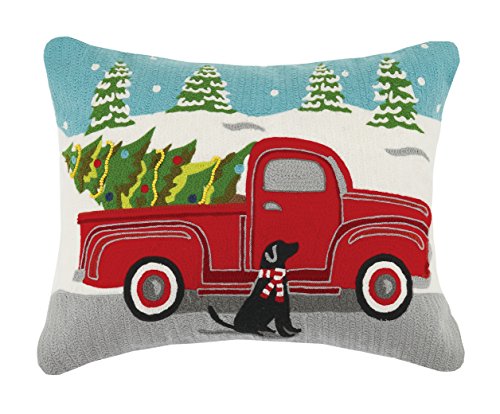 Peking Handicraft 31HRS1334C18OB Christmas Truck Crewel Stitch Pillow, Multicolor