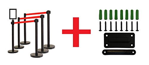 RETRACTABLE STANCHION SET, 6 Posts + SignFrame, 36" HT, 78" RED BELT