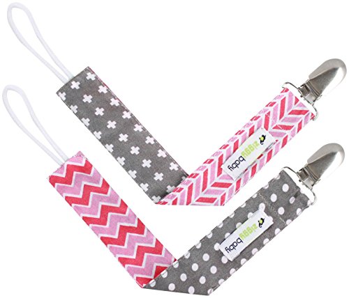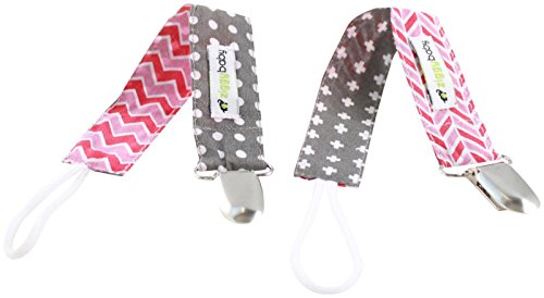 -. Title : Ziggy Baby Pacifier Clip Girl 2-sided Design Holder, Pink/Grey, 2 Pack