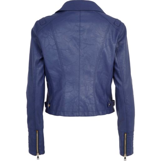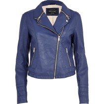 River Island BLUE ZIPPED COLLAR BIKER JACKET