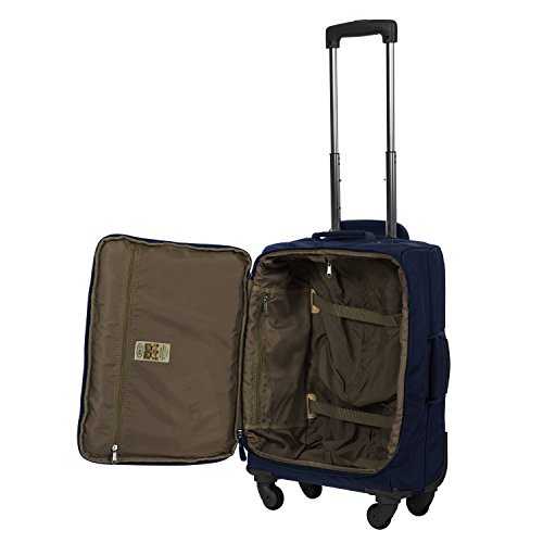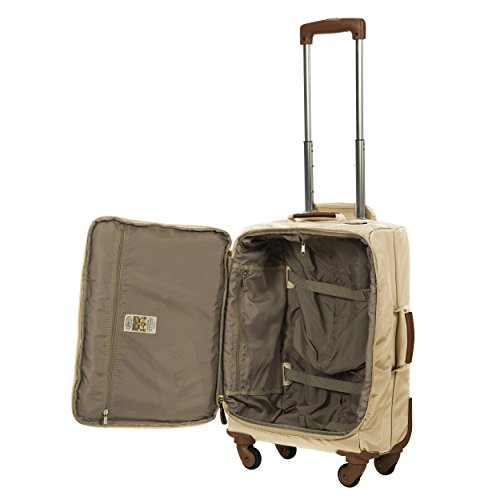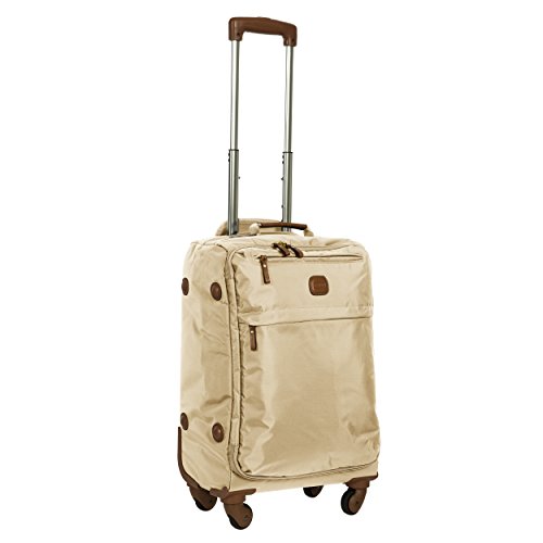 -. Binding : Apparel -. Brand : Bric's -. Feature : International & Domestic Airline Approved Carry-On Size (major airlines). Ideal carryon for 2-5 night trips. Weight 5.7 lbs. / PVC coated Polyamide, treated with water resistant finish on outer. Two zippered interior pockets. Tie-down compression straps on interior. / Framed reinforcement of outer fabric allows weighted bag or duffel to rest over suitcase without tipping by adding extra vertical stability. / 5 Year Limited Manufacturer's Warranty. Authentic Italian Leather Handles & Trim. / 21x14x9 -. Label : Bric's Lage Child code -. Manufacturer : Bric's Lage Child code -. PackageQuantity : 1 -. ProductGroup : Apparel -. ProductTypeName : LAGE -. Publisher : Bric's Lage Child code -. Studio : Bric's Lage Child code -. Title : Bric's X Travel 2.0 21 inch International Carry on Spinner