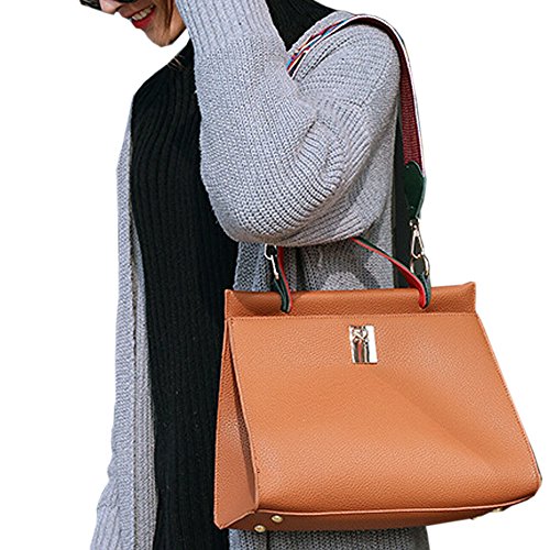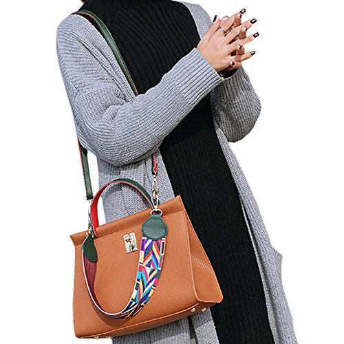 SEALINF Women PU Leather Top Handle Handbag Turn Lock Tote Shoulder Bag