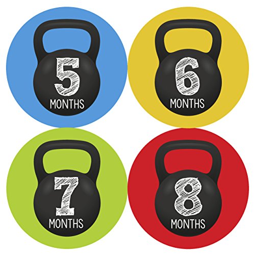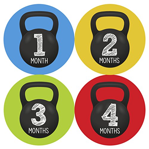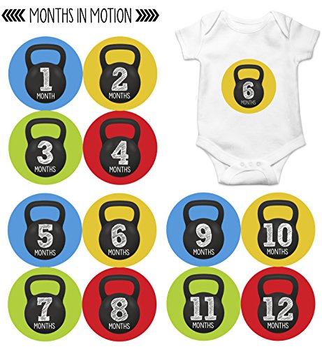 Months In Motion - Baby Month Stickers - Monthly Baby Sticker for Boys - Milestone - Workout Kettebell (1201)