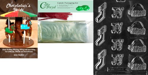 Cybrtrayd Joy Assortment Chocolate Mold with Chocolatier's Bundle of 25 Cello Bags, 25 Red Twist Ties and Chocolatier's Guide