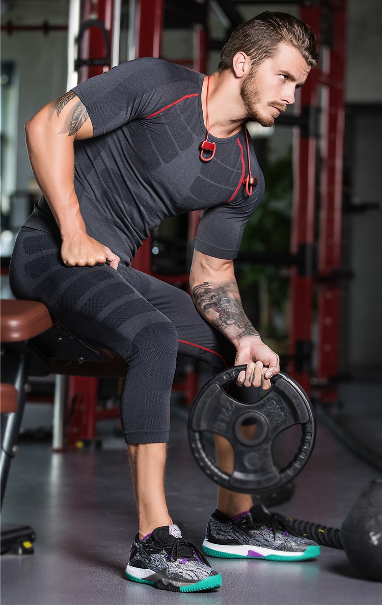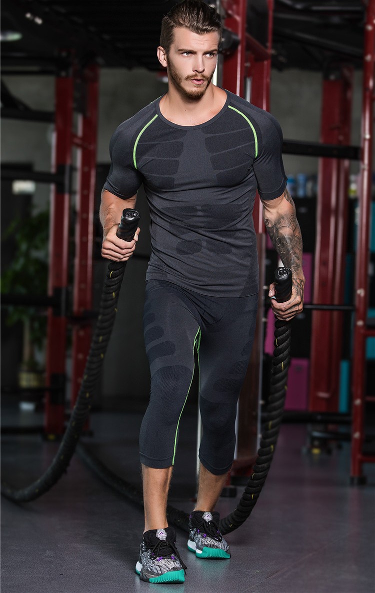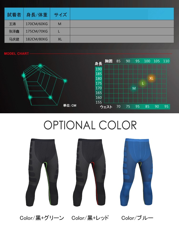 メンズ コンプレッションウェア スポーツタイツ レギンス フィットネス ランニング トレーニング 7分丈 加圧 吸汗速乾