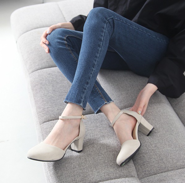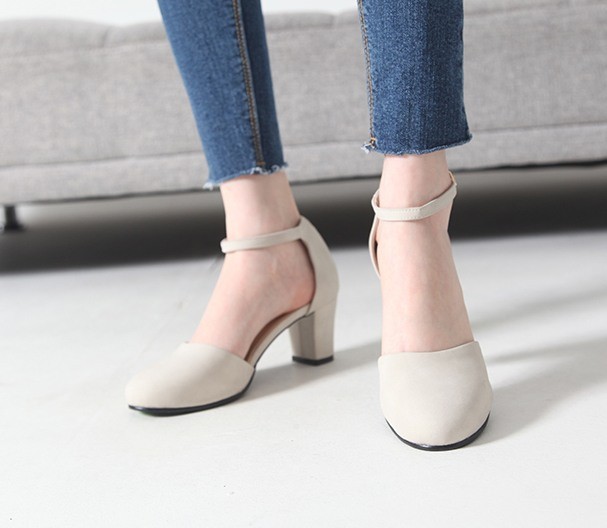 商品名:パンプス レディース サイドオープン アンクルストラップ 太ヒール 2017 春 ファッション 靴 婦人靴
