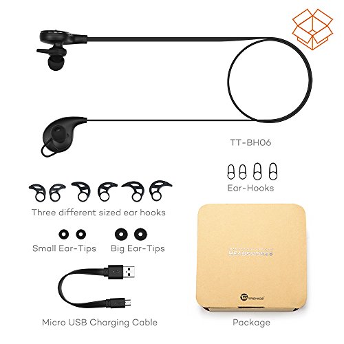 TaoTronics Bluetooth Headphones Wireless Earbuds Sports In Ear Sweatproof Earphones with Built in Mic (Balanced Audio, aptX Lossless sound, Cordless 4.1, CVC 6.0 Noise Cancellation) Black