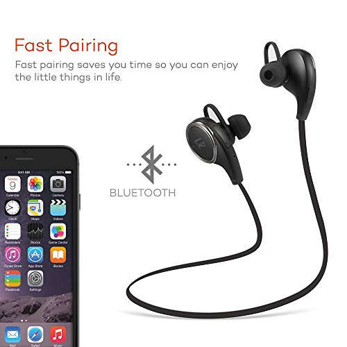 Latest Bluetooth 4.1 technology with up to 5 hours of continuous talking / music time; easy and fast pairing with smartphones (especially iPhone 7), tablets and other Bluetooth enabled music devices; aptX codec provides pure, CD like high quality sound for compatible devices.