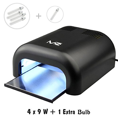 MelodySusie® 36W UV Nail Dryer - UV Lamp Light for Any UV gel polish, with Sliding Tray & Timmer Setting + 4 x 9W UV Lamp + Free Extra One Bulb - Black