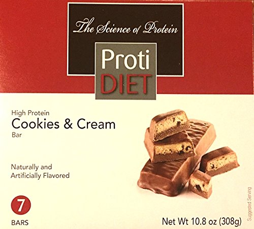 -. Title : ProtiDiet High Protein Cookies & Cream Bar 15 grams protein per serving 7 servings, 10.8oz