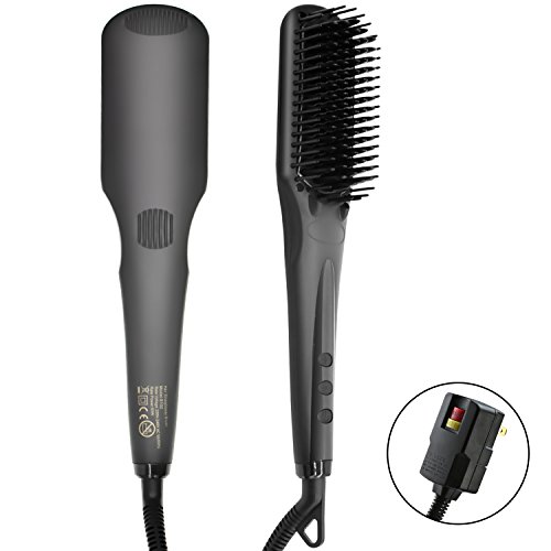 BeautyWill Hair Straightener Brush MCH Technology, Double Anion, Anti-Scald Comb Teeth for Fast Hair Straightening, US Safety Plug, Black