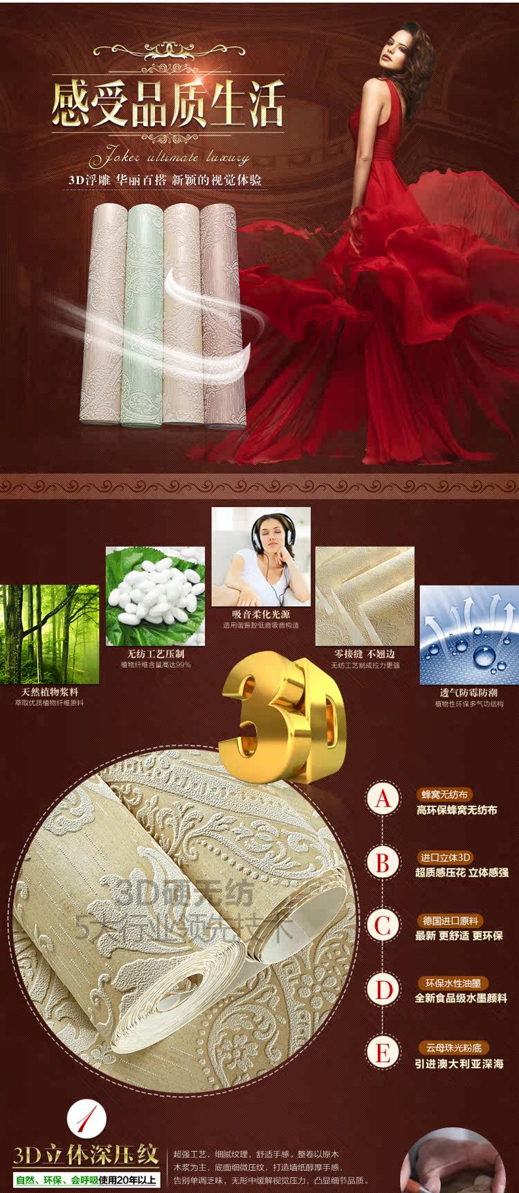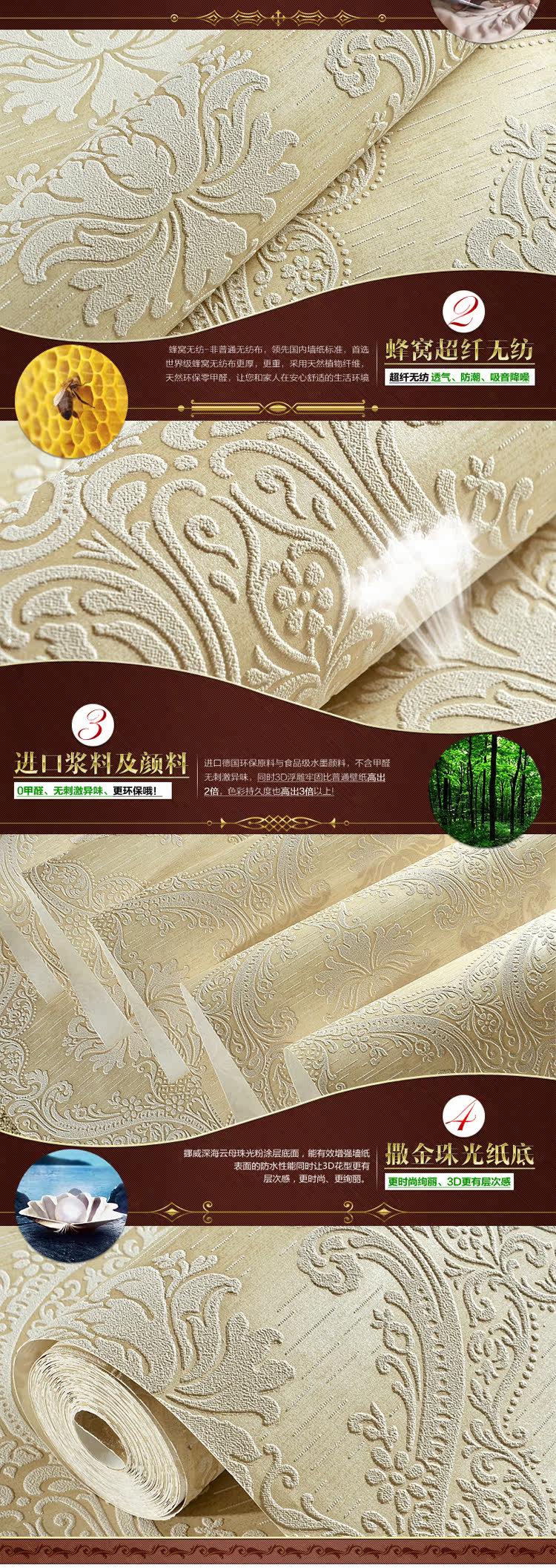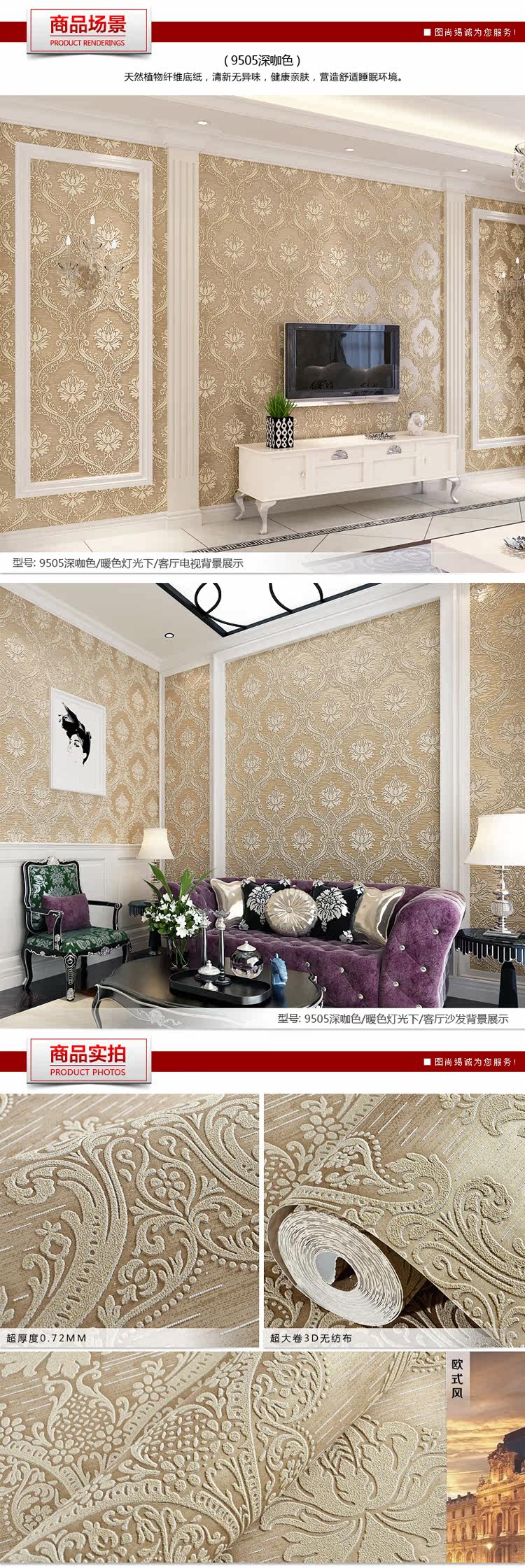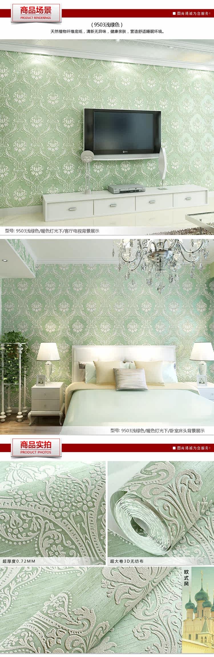 Material :Non-won Fabric wallpaper